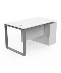 Desk with Fixed Pedestal : Rectangular table top with 01 grommet with Metal leg and melamine modesty panel.