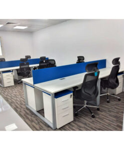 Workstation 2 seater with mobile pedestal size1400*1590*750H White color top with blue color screen.